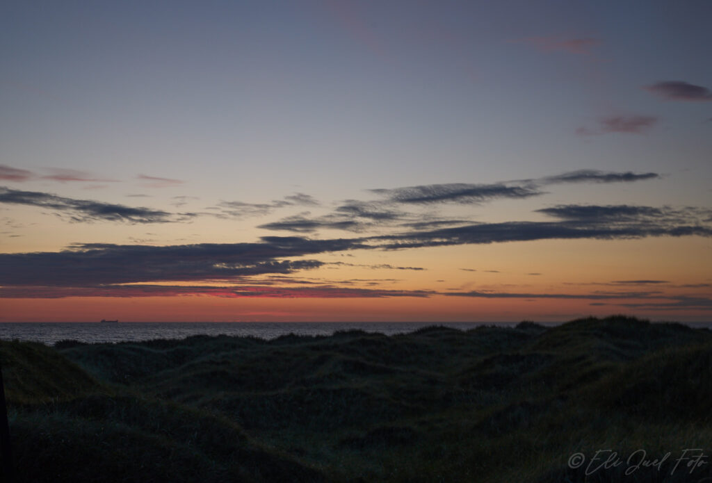 Søndag aftens opklaring viste lidt om hvor man kunne forvente lidt aftensol, så da vejret viste sig fra den nådige side, tuslede vi ned til Reve stand for at tage lidt solnedgangs billeder sådan omkring kl. 22, Desværre blev resultatet ikke helt som jeg havde set det i mit hoved, på Reve strand findes Reve tangen – et fugle beskyttelses område mærket med hegn og et hegn er et hegn når det er naturbeskyttelse, og jeg kunne ikke nå at komme til bage op i klitterne og “bagom”, så men må nøjes ;-)